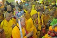 Hàng ngàn Phật tử đứng chật hai bên đường cung tiễn kim quan Trưởng lão Hòa thượng về nhập Bảo tháp tại chùa Nho Lâm (Mai Động, Kim Động, Hưng Yên).