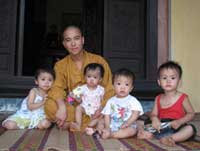 Vừa về đến sân chùa, bọn trẻ vội ùa ra ríu rít, vây quanh sư thầy Thích Thanh Lương. Thầy trụ trì chùa Sùng Nghiêm (hay còn gọi là chùa Dọc), thôn Minh Lộc, xã Minh Ðức (Tứ Kỳ). Ôm các cháu vào lòng, sư thầy Thích Thanh Lương giới thiệu: "Tôi đặt tên các cháu là Vương Tâm Phúc, cháu mới được 33 tháng, Vương Tường Thúy (27 tháng), Vương Tâm Ðức (27 tháng), Vương Tường Linh (6 tháng), Vương Tâm Hòa (6 tháng tuổi), Vương Tường Vy (3 tháng tuổi). Sáu đứa trẻ mà nhà chùa nhận nuôi đều có hoàn cảnh rất đặc biệt".