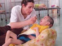 Một nhà hảo tâm người nước ngoài chăm sóc cô nhi tại chùa Kỳ Quang
