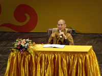 Chỉ vài tiết mục văn nghệ mở đầu chương trình, cả hội trường đã tràn ngập bầu không khí vui tươi, sống động. Sau lời giới thiệu của ông Kim Quốc Hoa, TT Thích Chân Quang bắt đầu buổi nói chuyện của mình xoay quanh các triết lý về gia đình.