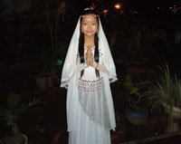 Bé Anh Thư hóa trang khi biểu diễn bản nhạc Mẹ Từ Bi