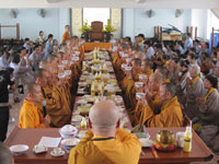 Không khí thật vô cùng xúc động khi hội chúng tưởng niệm về công ơn sinh thành của Phụ Mẫu và ơn giáo dưỡng của Thầy Tổ. Chương trình kết thúc vào buổi trưa cùng ngày. Lòng người con Phật hoan hỷ trong niềm pháp lạc khi thành kính dâng những chiếc pháp y lên chư Tôn đức làm hành trang trên con đường hoằng Pháp lợi sanh, lợi lạc hữu tình, giáo pháp Thích Ca hoằng truyền nhân thế, tứ chúng đồng tu.
