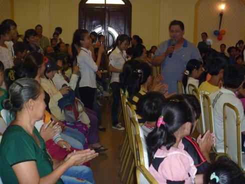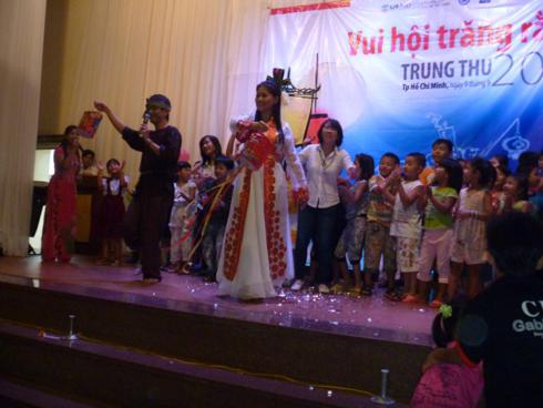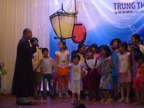 Chung vui đêm hội cùng các em, có sự hiện diện của bà Nguyễn Thị Hoài Thu – Chủ tịch hội phòng chống HIV/AIDS Tp.HCM kiêm Trưởng ban tổ chức; ĐĐ. Thích Quảng Thiện – Chi hội trưởng chi hội HVPGVN tại TpHCM, Phó ban tổ chức