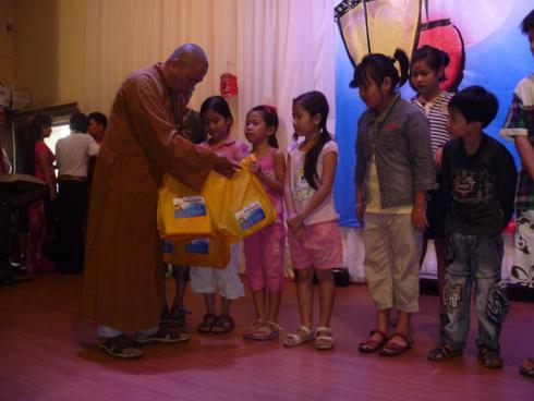 330 em là 330 phần quà chứa đựng tất cả những tình yêu và sự hy vọng của quý Thầy, quý Sư cô và các cô, chú nơi đây về một thế hệ mầm non đang vươn lên từng ngày. Trong từng phần quà ấy với những chiếc lồng đèn trung thu cho em vui hội trăng rằm, mong em hãy cùng các bạn thắp lên ánh sáng của trí tuệ, dưới đêm trăng tròn, ánh trăng xóa đi sự ngăn cách, phân biệt giữa những đứa trẻ bị nhiễm bệnh và những đứa trẻ bình thường. Những cuốn tập và cây viết, mong em hãy viết lên nền giấy trắng về những ước mơ của mình, về một thế giới hòa bình, con người không còn đau khổ bởi hiểm họa của HIV/AIDS. Và, mỗi chiếc bánh, cái kẹo trong từng phần quà ấy chính là sự ngọt ngào của tình yêu thương. Mỗi phần quà dẫu đơn sơ nhưng trong ấy nặng lắm với tình thương không hạn hữu, với sự ẩn chứa của ánh sáng trí tuệ khi em tự thắp sáng ngọn nến và vẽ lên trang giấy về một tương lai tươi đẹp khi tình yêu thương và trí tuệ đã có mặt..