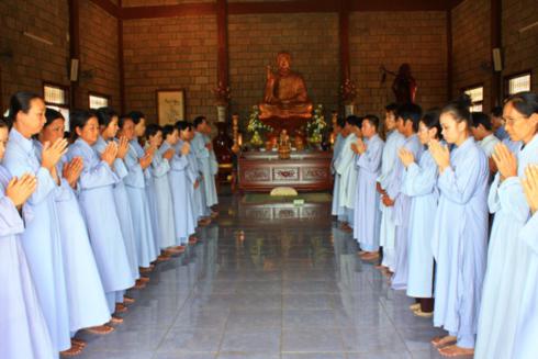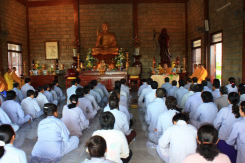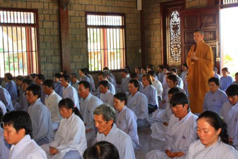 Ngày 23/10/2011 vừa qua là một trong những ngày như vậy. Đúng 7 giờ 30 hơn 120 Phật tử thiền sinh của ba đạo tràng: Trúc Lâm Sen Hồng (Phan Rang - Ninh Thuận), Trúc Lâm Phật Hiền (Phan Rí - Bình Thuận), Trúc Lâm Tường Vân (Phan Rí - Bình Thuận) đã tề tựu đông đủ tại chánh điện của Thiền viện để bắt đầu khóa tu “Một ngày thiền tập”.