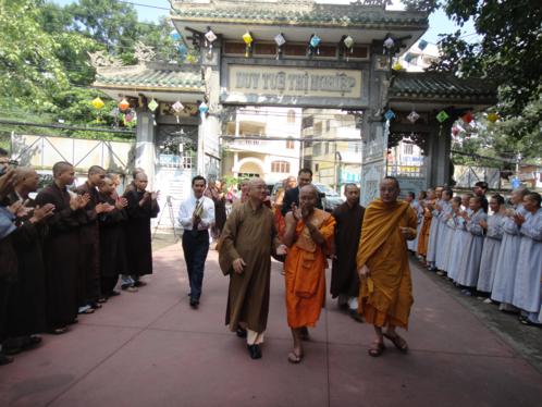 Sau đó, phái đoàn đã đến thăm Học viện Phật giáo Việt Nam tại Tp. HCM. Tại đây, HT. Thích Trí Quảng-Phó chủ tịch HĐTS, trưởng ban PGQT, Viện trưởng Học viện PGVN tại Tp.HCM, HT. Thích Đạt Đạo-Phó viện trưởng Học viện PGVN, cùng những vị trong Ban lãnh đạo của Học viện đã thân mật đón tiếp phái đoàn.