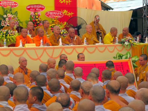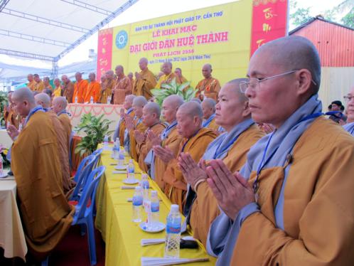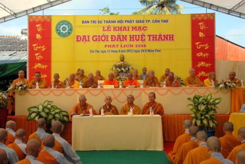 Trong Đại Giới Đàn này gồm có Ban Tổ Chức, Ban Giới Sư và các Tiểu Ban, đã tạo điều kiện thuận lợi, góp phần công đức cho Đại Giới Đàn được trang nghiêm, thanh tịnh và giúp cho các Giới tử được thọ nhận Giới pháp của Phật, thân tâm an lạc, Giới thể viên dung. Và trong giờ phút long trọngnày, Hoà thượng Đào Như – Trưởng BTSThành hội PG Cần Thơ tuyên bố khai mạc ĐẠI GIỚI ĐÀN HUỆ THÀNH.