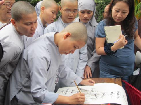 Ngày hội “ Sáng mãi ơn Thầy” khép lại, người người ra về mang theo những dòng cảm xúc khác nhau. Có thể những bậc ân sư – những ông lái đò âm thầm đưa khách sang sông mà không đợi người sang sông quay trở lại. Có người đã ví “ Thầy Cô như một nốt nhạc trầm êm đềm, dai dẳng cùng với lòng người, Thầy cô như những chiếc chuông gió âm thầm dạo những nốt nhạc trong vắt, say đắm lòng người. ” Và tháng 11 đã gói yêu thương của Thầy Cô –những bậc ân sư dành cho những đứa học trò nhỏ. Và tháng 11 về, không hẹn lại đến, mùa tri ân về, Tăng Ni sinh học viện lại kết những nụ hoa tri ân dâng lên những bậc Tôn túc cao quý. Ơn thầy vẫn sáng mãi trong từng sát na hiện hữu của chúng con nhưng trong ngày hội “Sáng mãi ơn Thầy” xin cho chúng con dâng lên Quý Ngài những đóa hương lòng.