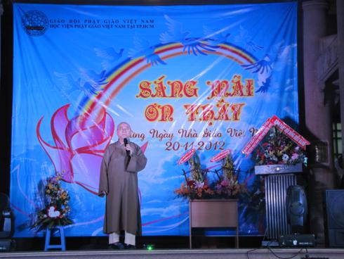 Trong không khí của tháng 11 yêu thương, ngày 15/11/2012, Học viện Phật Giáo Việt Nam tại Thành phố Hồ Chí Minh ngụ tại số 750 Nguyễn Kiệm, Phường 4 , Quận Phú Nhuận đã tổ chức ngày hội Tri Ân Thầy Cô với chủ để “ Sáng mãi Ơn Thầy” nhằm tỏ lòng tri ân sâu sắc đối với những bậc ân sư đã có công nuôi lớn ước nguyện cho hàng Tăng Ni học viện.