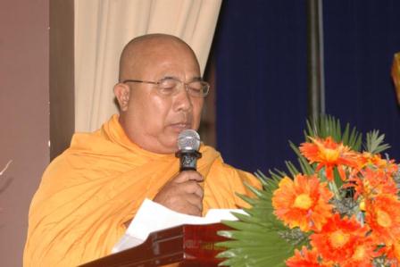 Sau phần niệm Phật cầu bị, Thượng Tọa Thích Huệ Thông đọc diễn văn khai mạc Hội nghị tổng kết công tác phật sự 2012 - Triển khai báo cáo kết qủa đại hội VII - GHPGVN - Trao giáo chỉ tấn phong giáo phẩm.