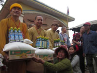 Những người dân Việt và cả Campuchia đến từ rất sớm, trong đó nhiều người nghe và hiểu được tiếng Việt. Đại diện CLB Hoằng Pháp Trẻ, Đại đức Chủ nhiệm Thích Phước Huệ thăm hỏi bà con và bày tỏ sự quan tâm, chia sẻ với những người đồng hương xa xứ. Đại đức Phó đoàn Thích Thiện Xuân thay mặt chư tôn đức và Phật tử trao tặng món quà quý nhất là Phật pháp đến với mọi người, thầy còn hướng dẫn đại chúng niệm Phật. Danh hiệu đức Từ phụ bằng tiếng Việt và Pali ban đầu cất lên một cách dè dặt, sau đó thì rõ ràng hơn. Nụ cười an lạc bắt đầu nở trên khuôn mặt khắc khổ vì những lo toan của cuộc sống. Có những người từ ngày xa xứ chưa một lần được về thăm quê, hỏi tại sao, các cô trả lời bằng một câu hỏi buồn: “tiền đâu mà về hả cô?”