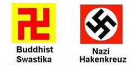 Chữ VẠN nằm nghiêng, màu đen của Hitler không thể nào có thể đem so sánh với chữ VẠN của Phật giáo màu sắc tươi sáng cho được. Một bên là trời cao xanh mướt, thanh cao thánh thiện, tượng trưng cho công đức và lòng từ bi vô hạn. Còn một bên thì thăm thẳm mù đen tượng trưng cho sự tăm tối và chết chóc, tội lỗi đau thương, khát máu và vô nhân tính. Cũng vì sự tối tăm đó nên giấc mộng Đồ vương của Hitler biến thành mây khói và đưa đến cái chết cho hàng triệu người vô tội và dĩ nhiên cũng kết liễu cuộc đời của chính kẻ bạo chúa.
