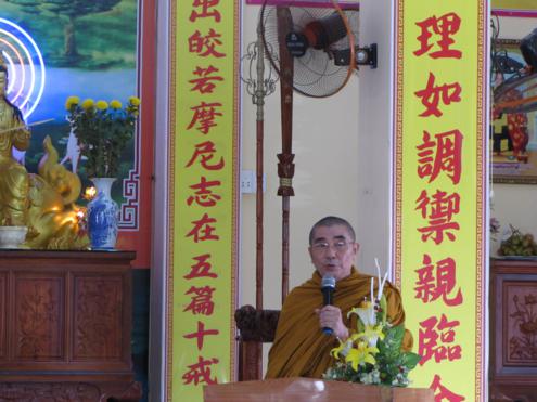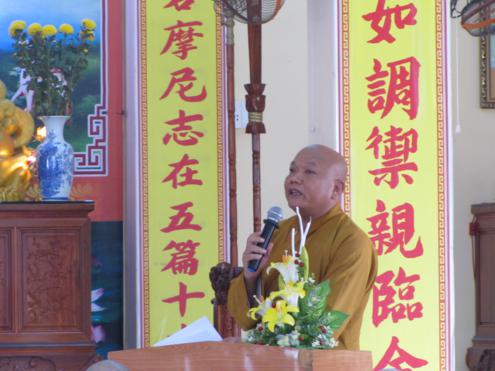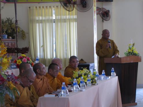 Sau cùng là HT. Thích Giác Toàn đại diện cho TƯGHPGVN ban lời huấn từ đến toàn thể chư Tăng Ni, mỗi ngày mỗi ngày đều thay đổi, vì vậy là một tu sĩ chúng ta phải học hỏi, theo dõi sự thay đổi phát triển đó để cập nhật những thông tin mới nhất cho việc hành đạo.  Do đó chư Tăng Ni cần phải theo học khóa hành chính đạo để thi hành đúng theo Hiến chương Giáo hội Phật giáo Việt Nam cũng như pháp luật của nhà nước. Đồng thời  chư Tăng Ni phải tập trung vào trí lực, tâm lực, năng lực tu tập để cầu nguyện cho đất nước được hòa bình, nhân dân an lạc. Hòa thượng tin rằng sức mạnh cầu nguyện của tâm linh sẽ chuyển hóa được tâm người và đó cũng chính là sự đóng góp cho hòa bình và phát triển của đất nước.