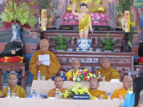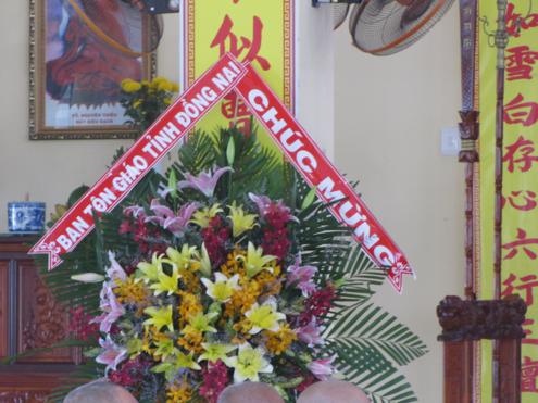 Tại buổi lễ, HT. Thích Nhật Quang đãi lao cho HT. Thích Minh Chánh -Trưởng Ban Trị Sự ban lời đạo từ. Đại diện chính quyền, ông Nguyễn Phước Ninh lên phát biểu và trao lẵng hoa tươi thắm chúc mừng đến BTS GHPGVN tỉnh Đồng Nai.