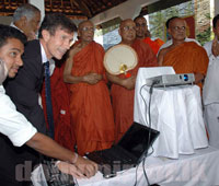 Đại sứ Hoa Kỳ tại Tích Lan, ngài Robert O. Blake đang xem trang tin điện tử vừa khai trương của Giáo hội Amarapura Maha Sanga Sabha Tích Lan.