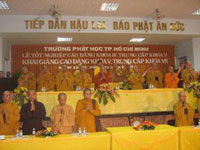 Sáng 15-2, Ban giám hiệu Trường Trung cấp Phật học, Lớp cao đẳng Phật học đã long trọng tổ chức lễ mãn khoá IV (hệ cao đẳng), khoá V (hệ trung cấp), đồng thời khai giảng khoá mới: khoá V (hệ cao đẳng) và khoá VII (hệ trung cấp). Tham dự và chứng minh buổi lễ có chư tôn giáo phẩm lãnh đạo giáo hội, THPG, Ban đại diện PG các quận huyện cùng toàn thể Tăng Ni sinh các khoá.